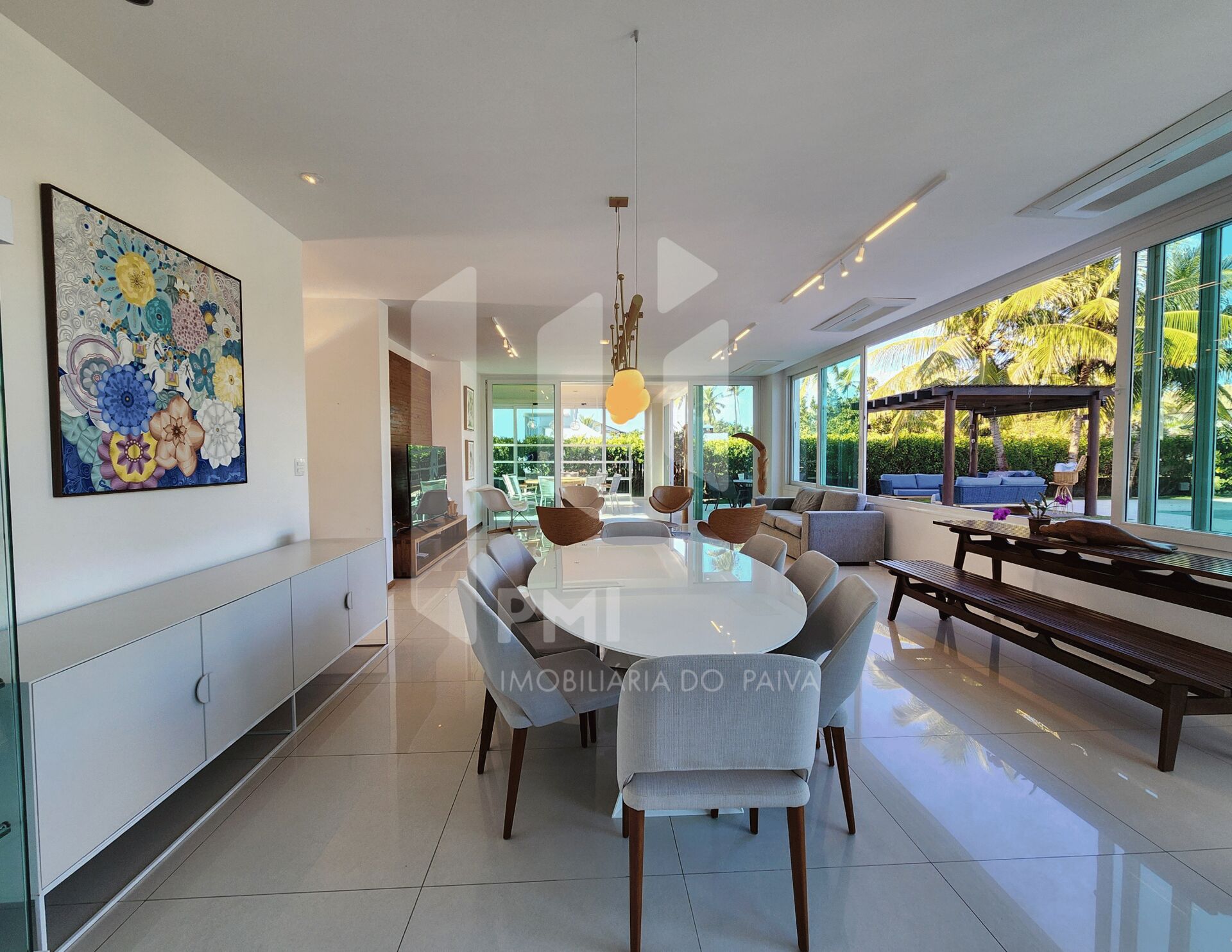 Logo na entrada, a imponência do projeto arquitetônico já anuncia o que está por vir: pé-direito alto, ambientes banhados por luz natural e espaços que se conectam de forma fluida. A área social é o coração da casa – sala de estar e jantar integradas à varanda, ao belo jardim e à piscina de dimensões generosas, onde cada momento de lazer se transforma em experiência.